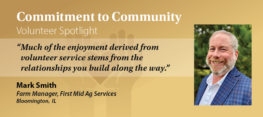 First Mid is honored to recognize Mark Smith, Farm Manager with First Mid Ag Services in Bloomington, IL, as our Volunteer Spotlight for March 2026. Mark is committed to supporting local community organizations through volunteerism, consistently demonstrating our core values.